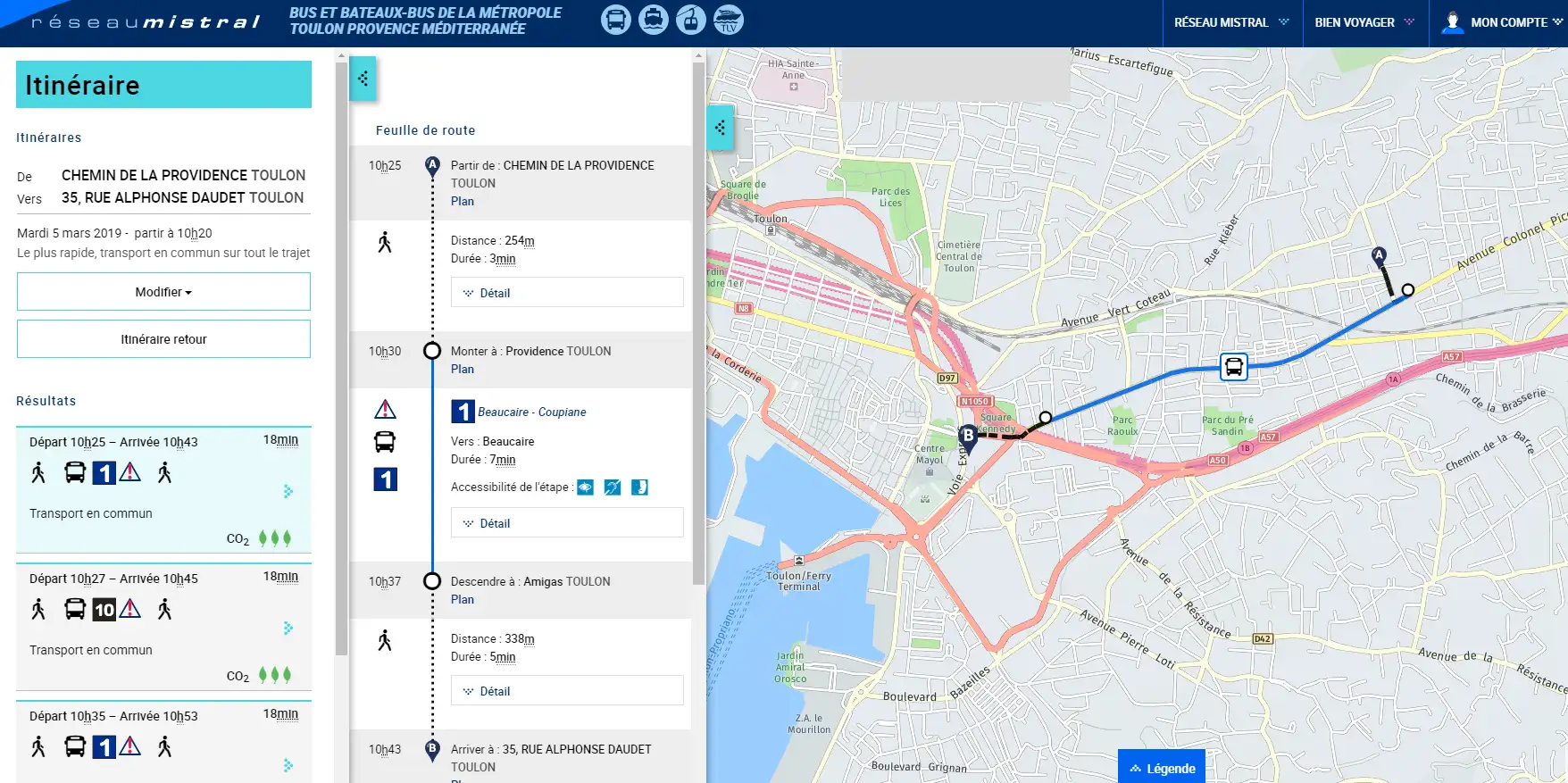 Les transports en commun de l’aire toulonnaise sont assurés par le Réseau Mistral.